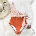 Special Offer Cupshe Yellow And White Colorblock Onepiece Swimsuit Women Patchwork Belt Bow Monokini 2020 Vneck with FREE Worldwide Shipping!